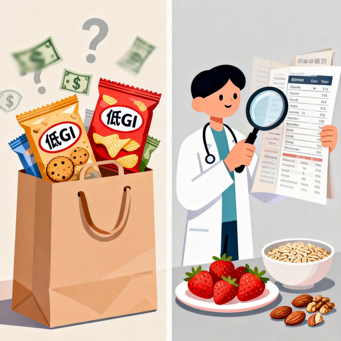 标签也不一定靠谱! 市面上低GI的宣传五花八门,有的产品根本没经过严格的认证测试。记住,没有明确标注GI具体数值、认证机构或检测报告的低GI宣传,都要打个问号。