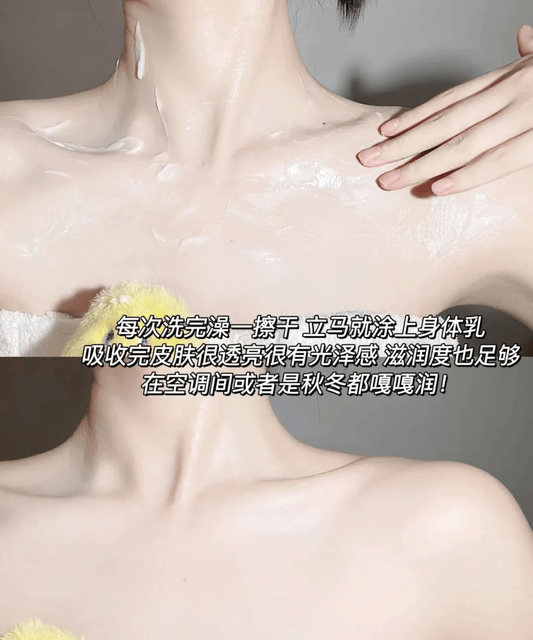 身体乳可以早晚抹一次,能让皮肤更嫩滑。