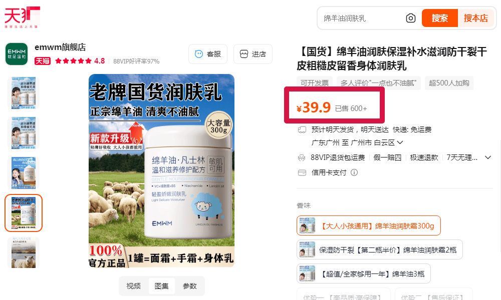 至于价格,这款在官方旗舰店价格都要39一瓶: