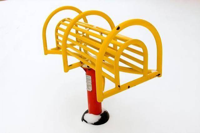 小区旋转类健身器械的代表,它们通常是一个固定的中柱,上部提供手扶的支撑杆,下方为一个可以旋转的小圆盘。