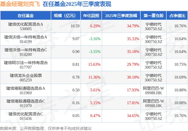 互联网刘克飞2025年三季度表现,建信沃信一年持有混合A基金季度涨幅35.33%4刘克飞在担任建信龙头企业股票(005259)基金经理的任职期间累计任职回报144.9%,平均年化收益率为12.43%。期间重仓股调仓次数共有82次,其中盈利次数为53次赞 (0)xiaohuahua2025-10-26阅读(33)标签:基金业绩 / 基金经理分析